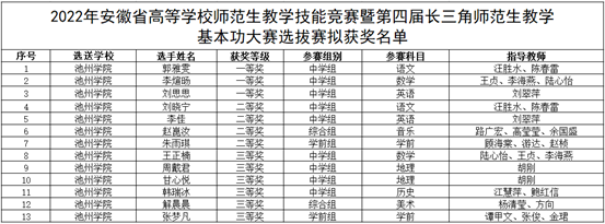 近日,省教育厅公布了2022年安徽省高等学校师范生教学技能竞赛获奖名单,买球官网学生获得一等奖3项、二等奖4项、三等奖6项,6名教师荣获“优秀指导教师”称号,其中,一等奖获奖数量居全省参赛院校前列。