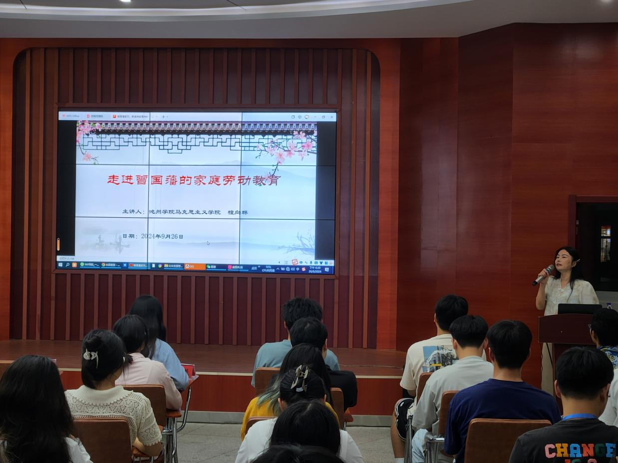 9月26日晚,外围买球app十大平台大学生成长沙龙“青春大讲堂·家风文化系列讲座之十五”(总第六十七期)在大学生活动中心举行。本期青春大讲堂以“走进曾国藩的家庭劳动教育”为主题,邀请买球官网马克思主义学院副教授檀向群老师为同学们讲述曾国藩的家庭劳动理念和实践,为现场师生带来一场内容丰富、颇具教育意义的家风文化主题讲座。