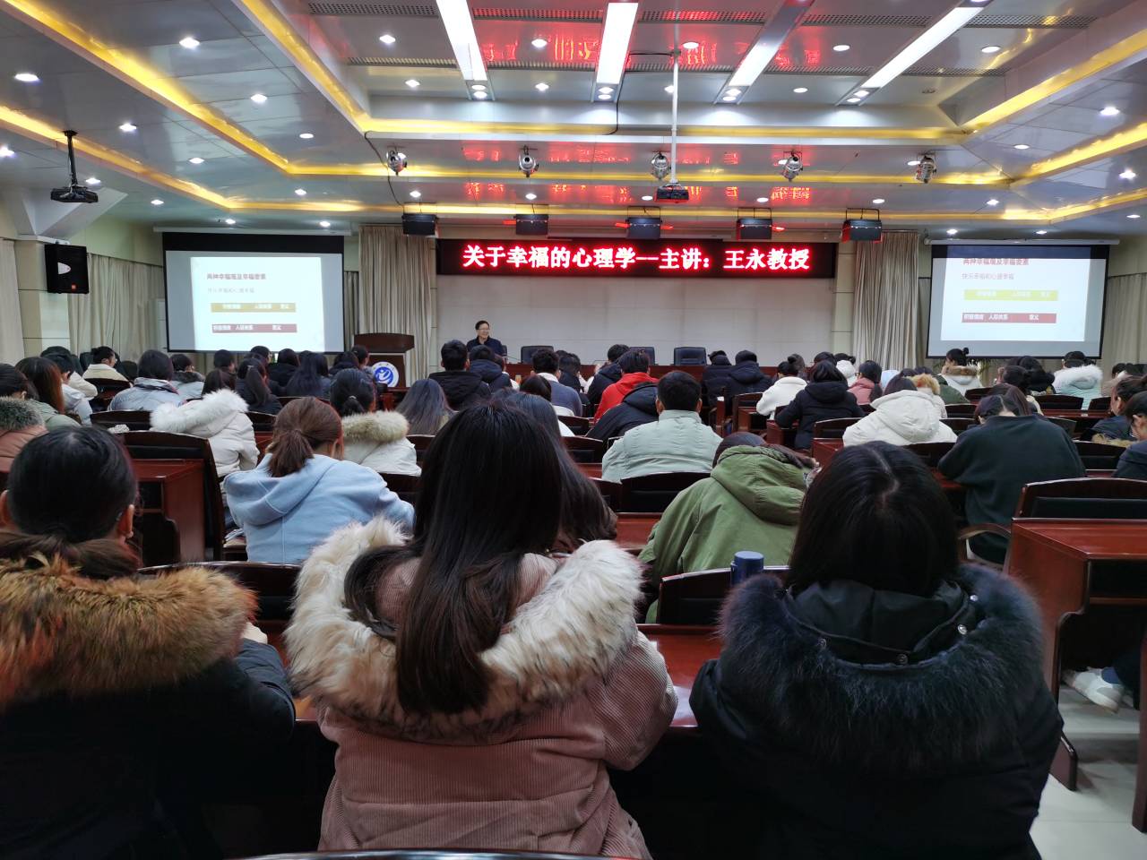 12月21日上午,学生处在办公南二楼会议室举办关于幸福的心理学培训会。培训会由安徽省督学、省教育评估专家、省教育厅大学生心理健康教育专家指导委员会委员王永教授主讲。买球官网大学生心理委员联合会和二级学院心理部心理学干们参加了培训。