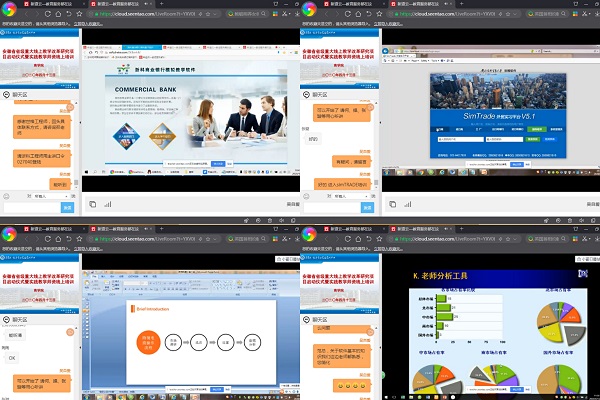 新道工程师孙阳春围绕“直播教学师资培训、U8安装与使用技术培训”、世格软件技术工程师吴健围绕“跨境电商平台、SimTrade在线使用技术培训”、浙科软件技术工程师姜绿洲作师围绕“商业银行模拟教学软件、网络营销模拟教学软件两款软件在线使用技术培训”、南京校研技术工程师范成武围绕“企业运营管理软件在线使用技术培训”分别为商学院所有实验课教师进行了专场线上师资培训。