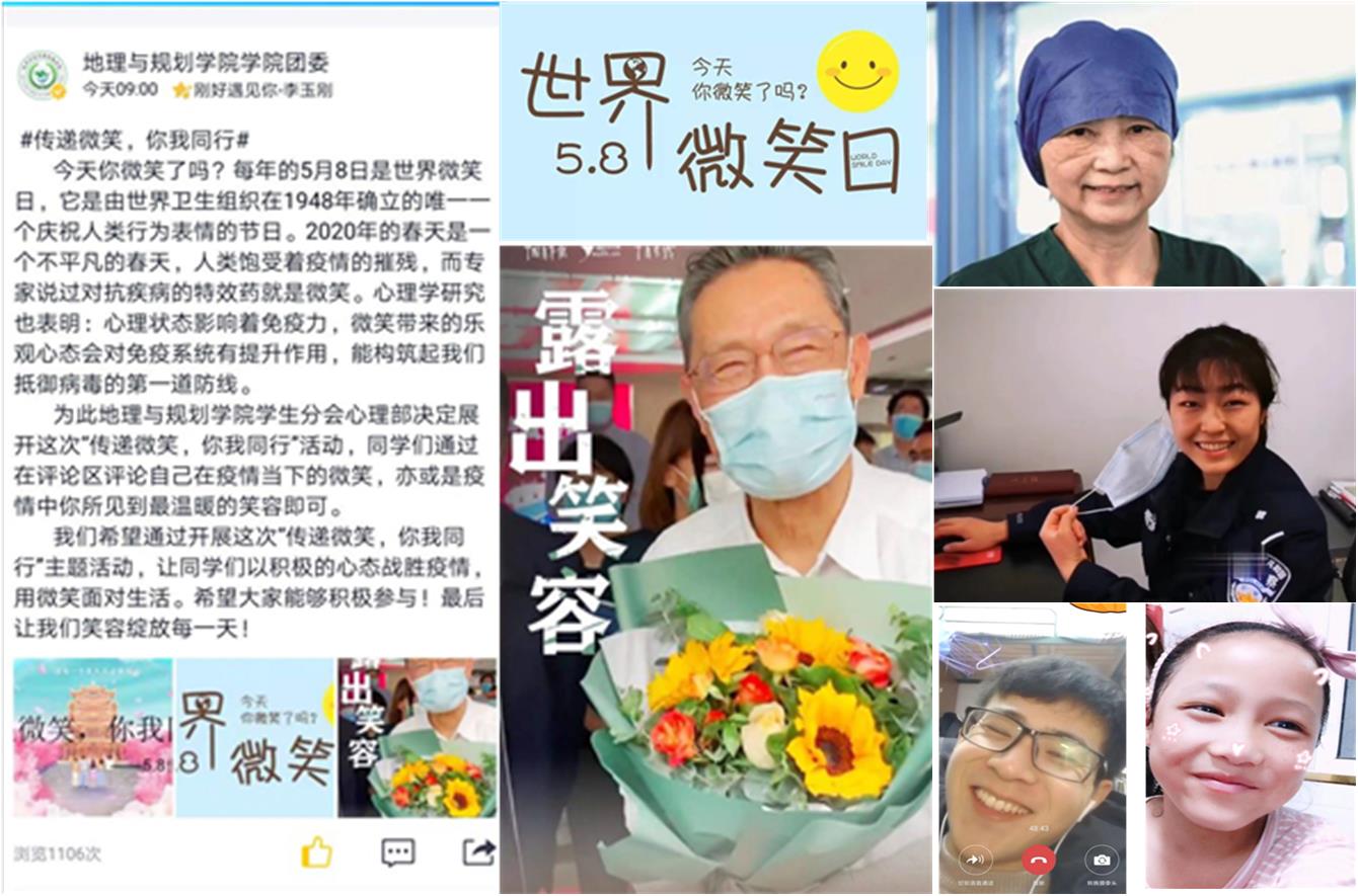 每年的5月8日是世界微笑日,是由世界卫生组织在1948年确立的唯一一个庆祝人类行为表情的节日,希望通过微笑促进人类身心健康,同时在人与人之间传递愉悦与友善,增进社会和谐。2020年5月8日,是第72个世界微笑日。外围买球app十大平台地理与规划学院举办了“世界微笑日——传递微笑,你我同行”主题活动,此次活动由地理与规划学院学生分会心理部承办。