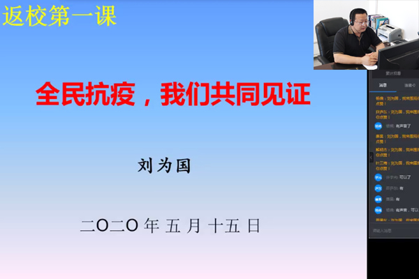 学院党委书记刘为国围绕“全民抗疫,我们共同见证”主题先后从“中华民族坚韧不拔的斗争精神”、“共产党是人民干大事的主心骨”、“社会主义体制下集中力量办大事的伟岸气魄”、“党旗所向,是党员先锋们逆流而上”、“人类是命运共同体”等五个方面与同学们分享了自己在参与全民抗疫中的认识和体会,引导同学们更深刻地理解中国共产党为什么“能”,马克思主义为什么“行”,中国特色社会主义为什么“好”,在观察、思考和实践中,构建正确的世界观、人生观、价值观,自觉培养坚韧不拔、从容不迫、爱国爱民的奋斗精神和家国情怀,真正的与祖国一起成长。