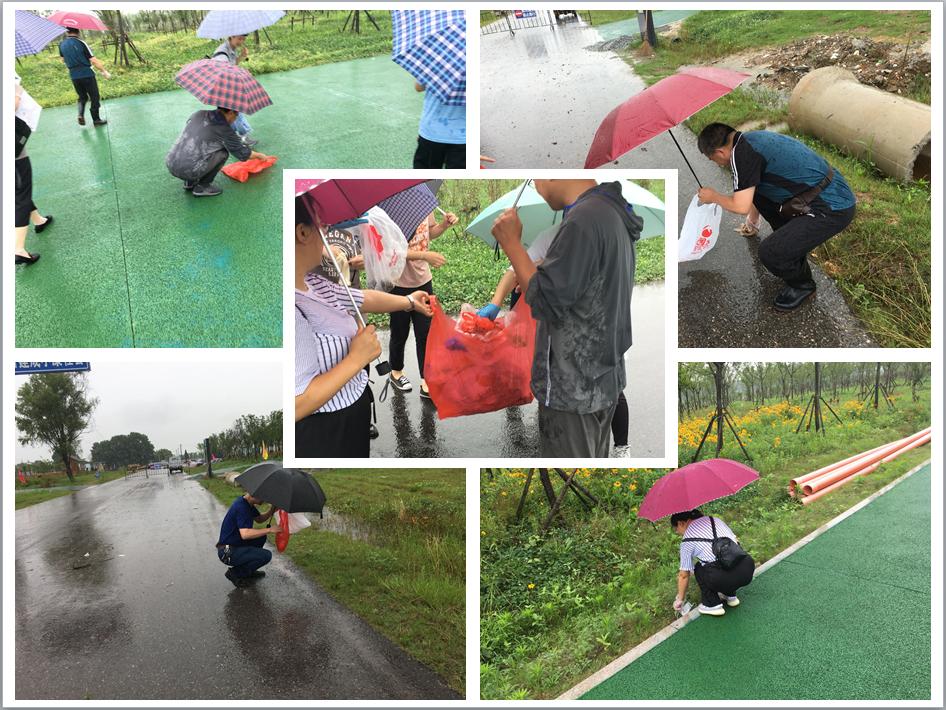 上午9点,在池教工党员冒雨赶赴和泰星城小区东门集合,院党委书记许思友也以支部普通党员的身份参加活动,在两位教工支部书记的带领下,前往江堤道路沿线捡拾各类垃圾。天公很不作美,雨下得很大,也一直下个不停,很多党员老师在捡拾垃圾过程中被雨水淋湿了衣服,但大家参与活动的热情丝毫未受影响。党员干部带头行动,不怕脏,不怕累,党员教师也都积极行动,收获满满,所到之处,清洁一新,大家的欢声笑语里洋溢着劳动的欢乐。