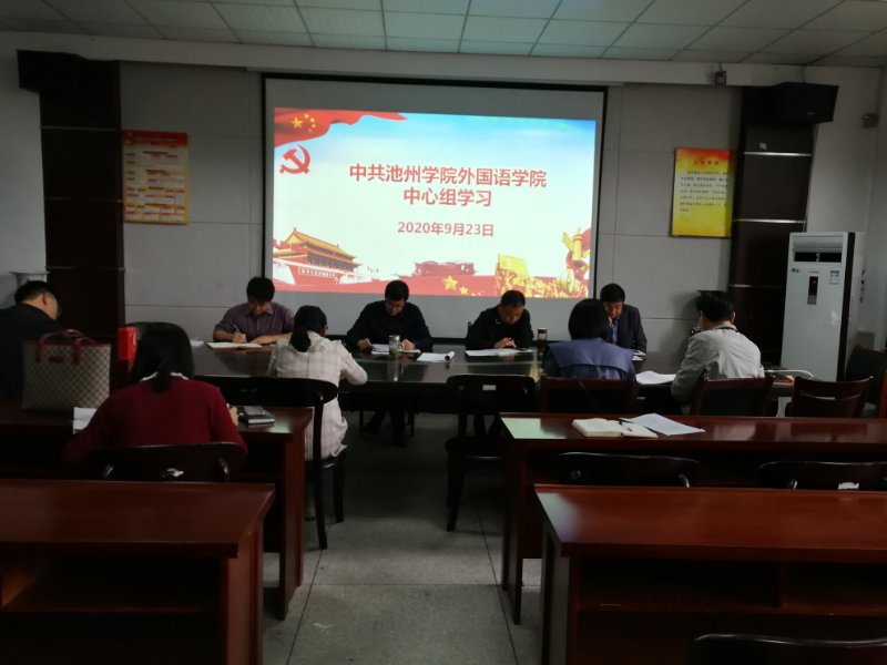 9月23日下午,外国语学院在会议室举行党委二级中心组集中学习研讨。学院班子成员、科级干部和支部书记参加了此次集中学习。会议由外国语学院党委书记张乐民主持。
