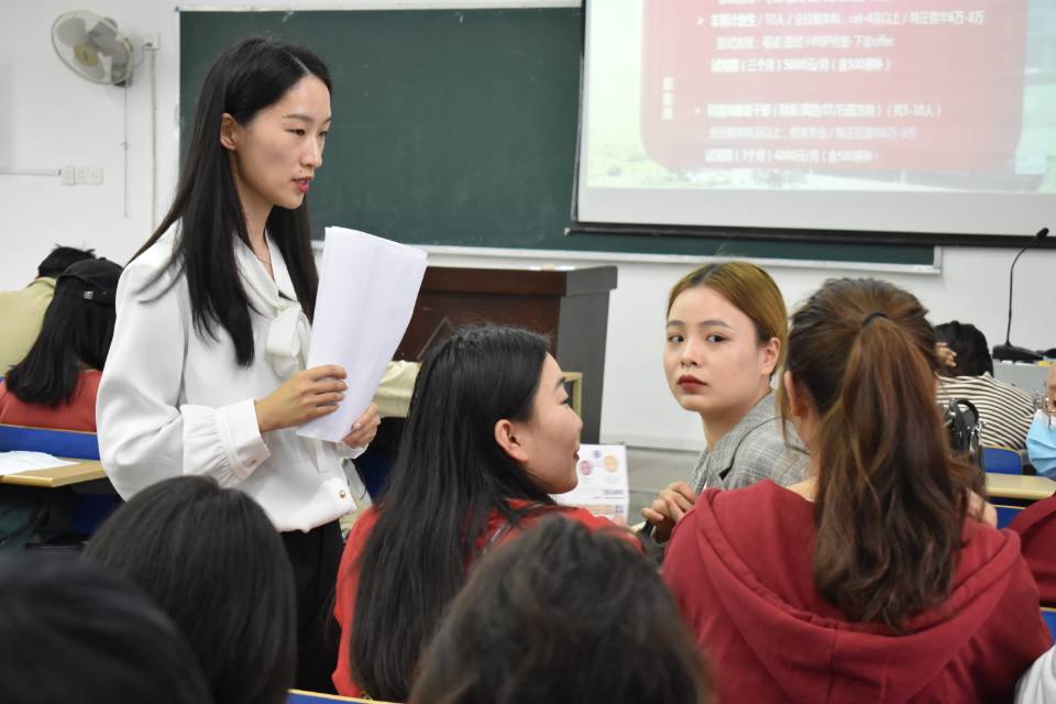 为进一步拓宽2021届毕业生就业渠道,积极推进毕业生提前落实就业岗位,10月15日,商学院2021届毕业生首场专场招聘会如期在博识楼举行。共有南京奎鑫钢铁有限公司、宁波亚虎进出口有限公司、上海掌小门教育科技有限公司、上海链家集团以及上海添健生物科技等5家企业前来参加招聘会,招聘企业提供了近100个涵盖会计、营销、跨境电商等具有良好发展空间的专业岗位,吸引了大批应届毕业生积极参与。