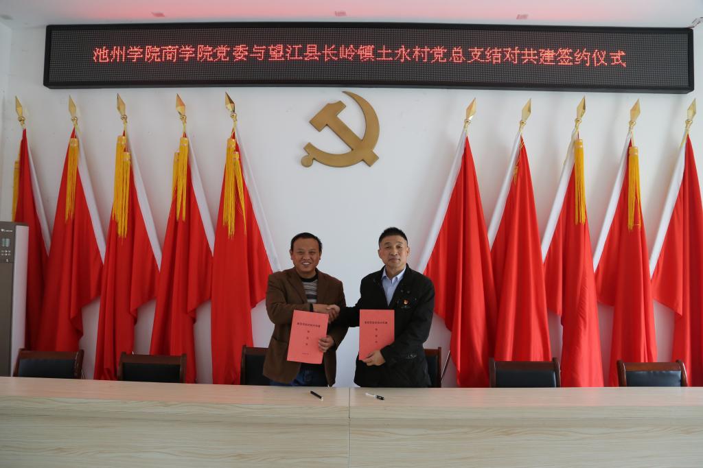 在土永村村部,罗志刚代表商学院党委与土永村党总支开展结对共建活动,双方在共同协商、充分酝酿的基础上签订了结对共建协议。商学院将在乡村规划、产业发展、农产品品牌建设与推广、农村电商、乡村教育、技术人才支援等方面,助力土永村脱贫攻坚与乡村振兴。校地党组织之间通过开展互动学习、技能培训、共上党课、专题讲座等党建联建活动,实现资源共享,优势互补,不断推动基层党建工作统筹协调发展。结对共建活动中,商学院党委还向土永村党总支捐赠了办公用品。