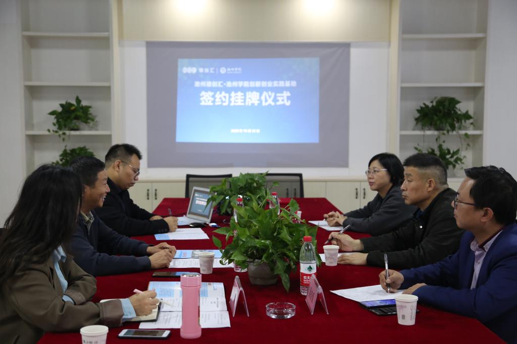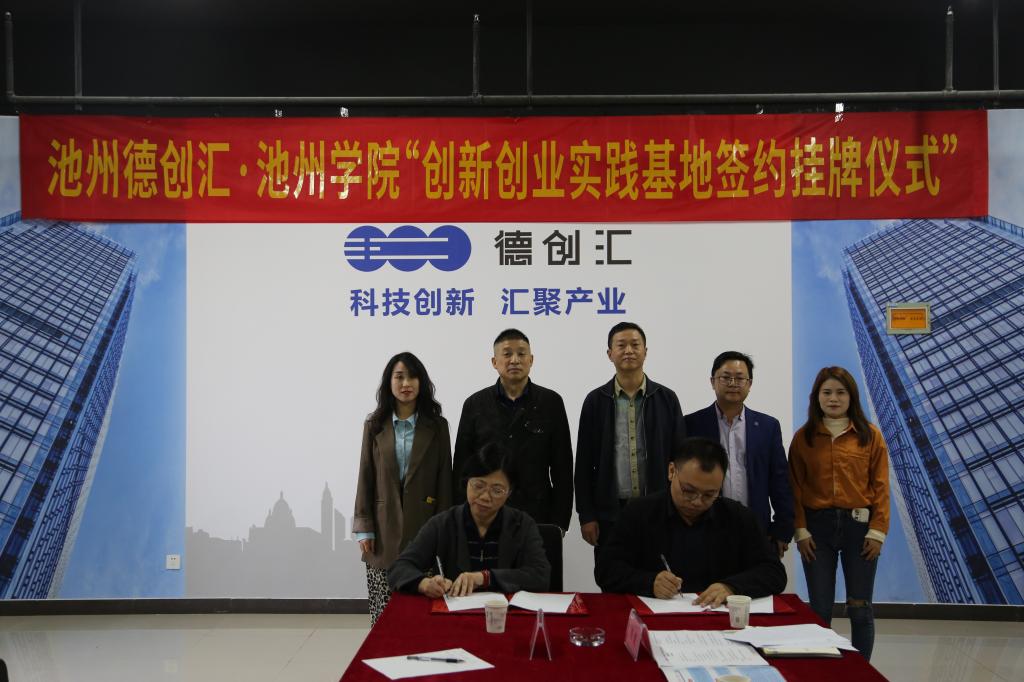 10月22日,外围买球app十大平台商学院与德创汇孵化服务有限公司举行创新创业实践基地签约暨授牌仪式。池州经开区投资促进局局长余跃海、商学院党委书记罗志刚、院长项桂娥、副院长吴自爱出席签约和挂牌仪式。