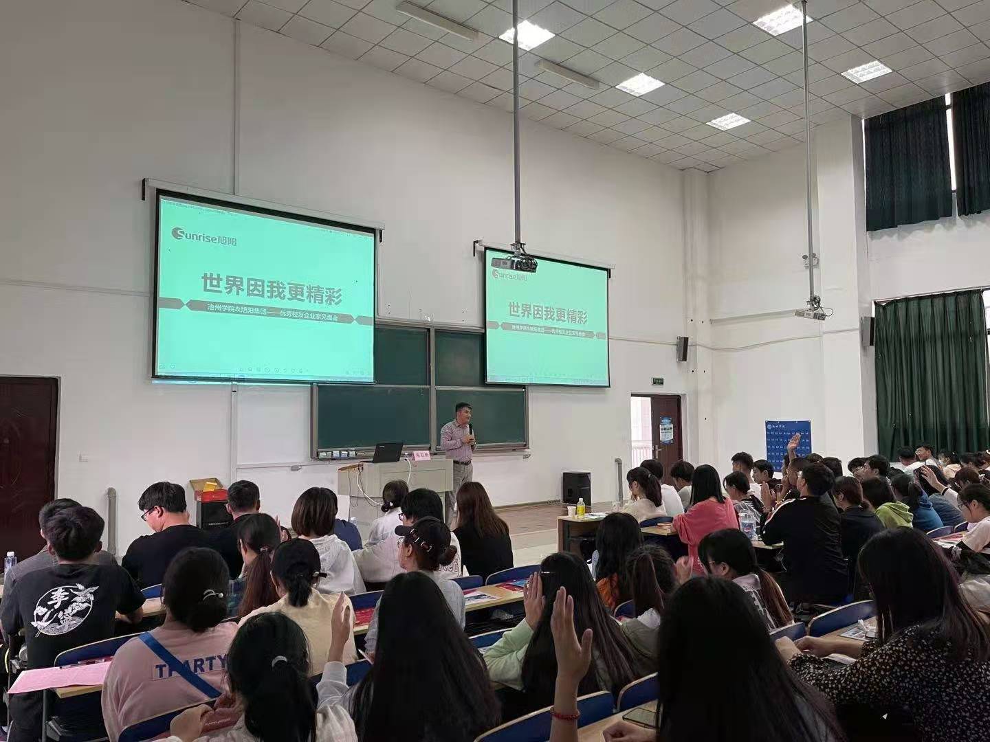 在外围买球app十大平台逸夫楼阶梯教室举办了“旭阳课堂”专题讲座。副校长阳光宁作重要致辞,他表示,学校一直以来都很重视校友资源以及与校友企业的合作,“旭阳课堂”是深化产教融合、校企合作、推动学科专业交叉融合教学改革创新的一种重要形式。他相信,通过“旭阳课堂”的持续开班,校企双方一定会充分发挥各自优势,创新合作机制,不断提高人才培养质量。旭阳集团董事长朱双单从自身感悟和心路历程出发,向学弟学妹们阐述了自己的创业励志经历,以及人生规划的重要性,并要求他们结合自身特点,找准赛道,去实现自己的人生目标。朱双单与现场同学进行自由交流,对于同学们提出的问题进行一一的耐心解答,并表示对于志同道合的同学,旭阳一定会敞开大门、期待加入。商学院和材环学院等不同专业近200名学生参加此次活动。