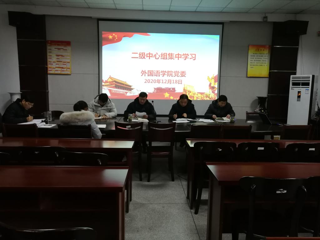 12月18日上午,外国语学院党委在会议室举行二级中心组集中学习会议。会议由外国语学院党委书记张乐民主持。