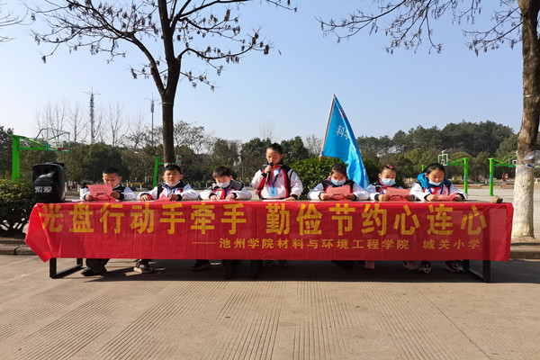 为贯彻习近平总书记提出的坚决抵制餐饮浪费行为,切实培养节约习惯,在全社会营造浪费可耻、节约为荣的氛围重要指示,12月20日,材料与环境工程学院携手城关小学于外围买球app十大平台第一食堂开展“光盘行动手牵手,勤俭节约心连心”主题志愿活动。