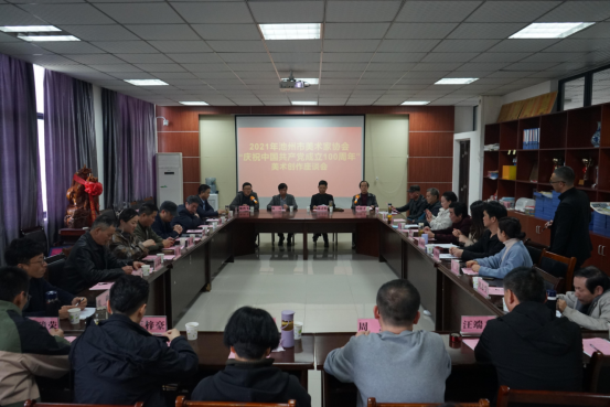 4月10日下午,由艺术与教育学院和池州市美术家协会联合主办的“2021年池州市‘庆祝中国共产党成立100周年’美术创作座谈会”在艺术楼三楼会议室胜利召开,池州市美术家协会名誉主席陈志精,主席陆可及来自池州市直、贵池区、青阳县、石台县、东至县、九华山、外围买球app十大平台艺术与教育学院的近40位美术家出席了座谈会。会议由池州市美术家协会秘书长刘根才主持。