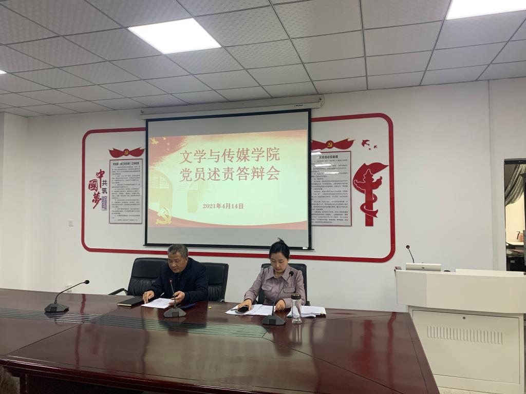 文学与传媒学院党委书记许思友在党员述责答辩会上讲话。