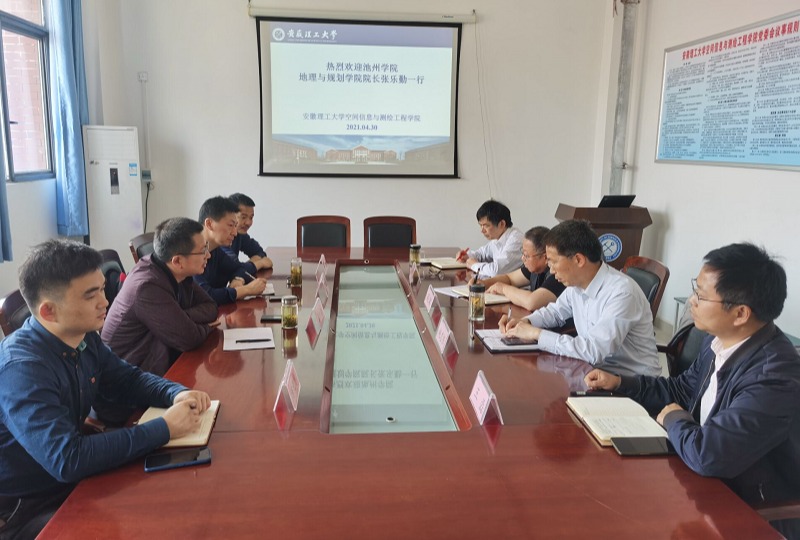 双方就两学院之间的交流合作、2021年安徽省高等学校大学生测绘技能大赛的筹备事宜进行了深入细致的交流。