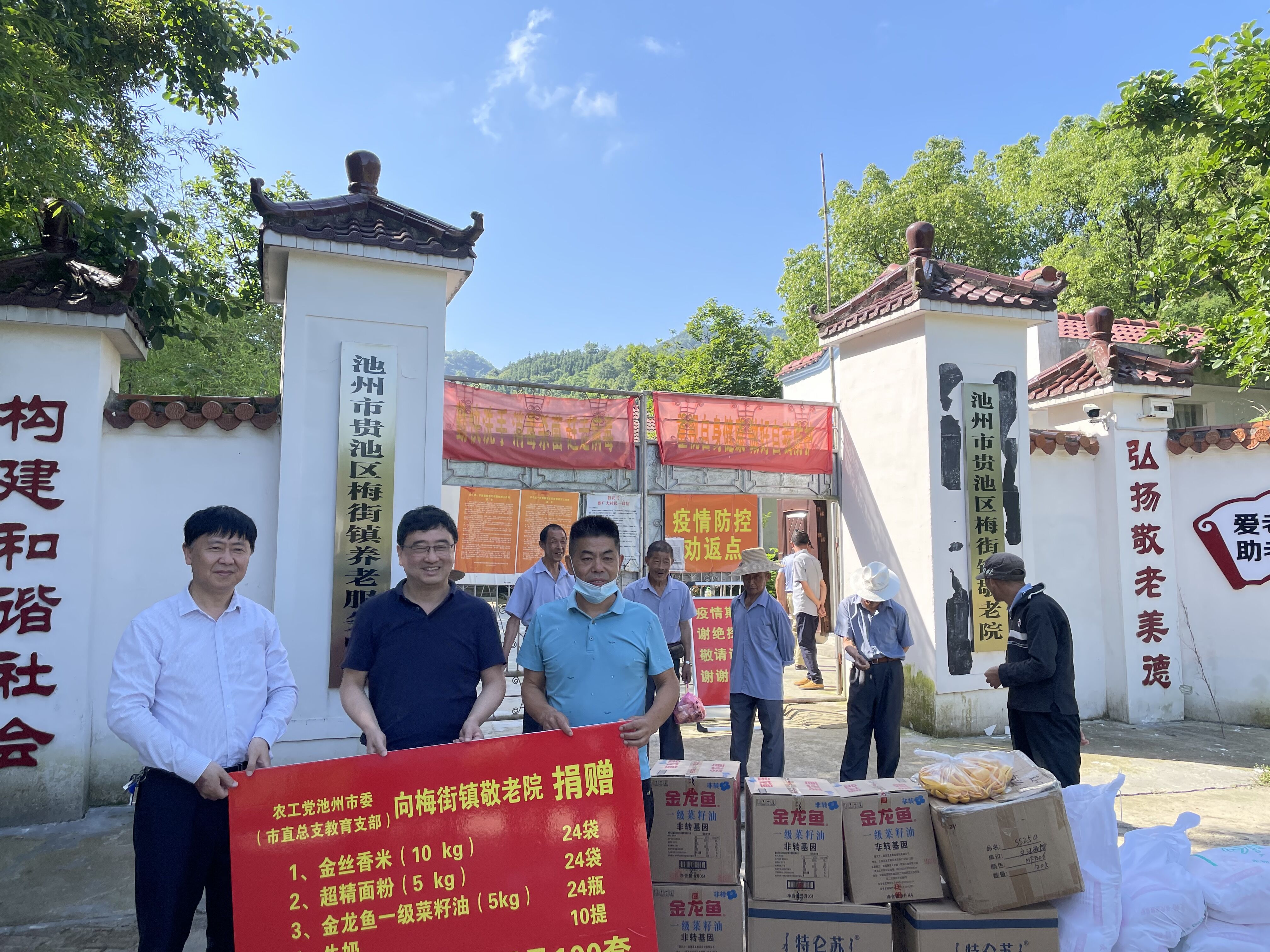 为推进民主党派开展中共党史学习教育,5月30日,外围买球app十大平台农工党教育支部成员赴梅街镇敬老院开展送温暖献爱心活动。农工党池州市委主委吴振亚,校党委委员、统战部部长胡兵参加了活动。