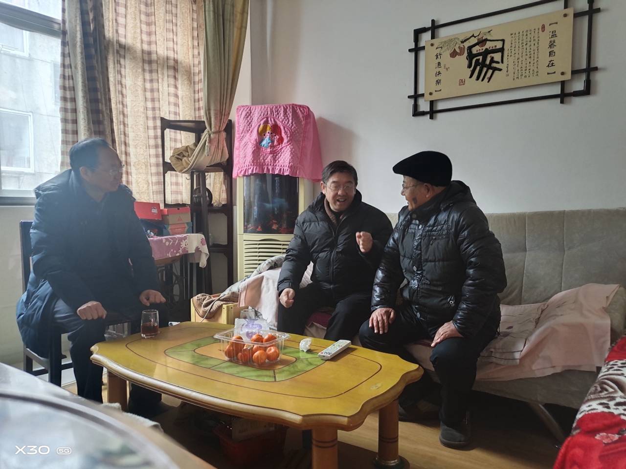 在离休干部、抗战老兵周盛举家中,学校党委书记孙晓峰与周老谈心交流,详细了解周老家庭生活和健康状况,共同回顾周老光荣的革命斗争生涯和在学校的工作经历,感谢他为国家、为学校所做的贡献,同时嘱咐周老一定要注意保重身体,有困难找组织,祝愿他健康长寿、幸福安康。