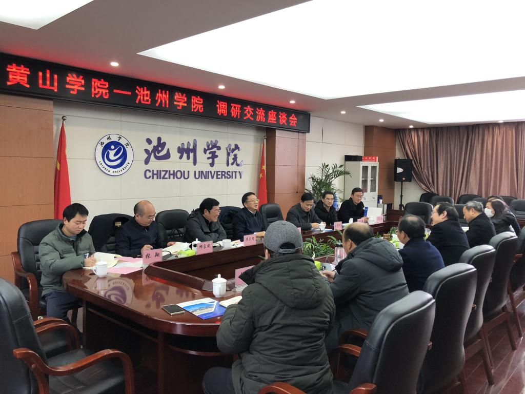1月21日,黄山学院党委书记汪枫,党委委员、副校长刘英旺一行来校调研交流。院党委书记孙晓峰热情接待了汪枫一行,并主持召开了座谈会。副院长王延寿,党委委员、纪委书记、监察专员汪海出席座谈会。