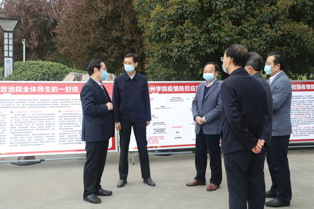 3月19日上午,市委书记方正来买球官网实地督导检查疫情防控工作。学校党委书记孙晓峰、副院长王延寿陪同检查。