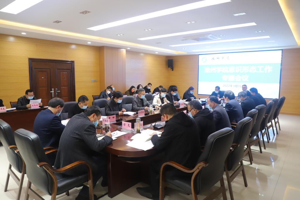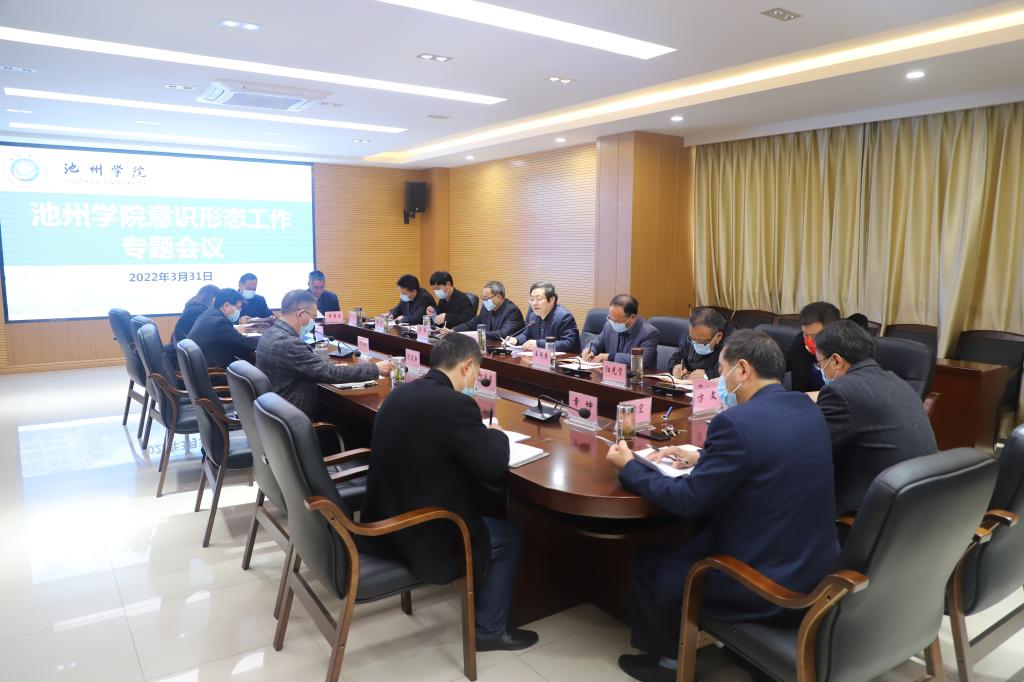 3月31日,学校在办公北二楼会议室召开意识形态工作专题会议。院党委书记孙晓峰主持会议并讲话,院领导王延寿、汪海、阳光宁出席会议。