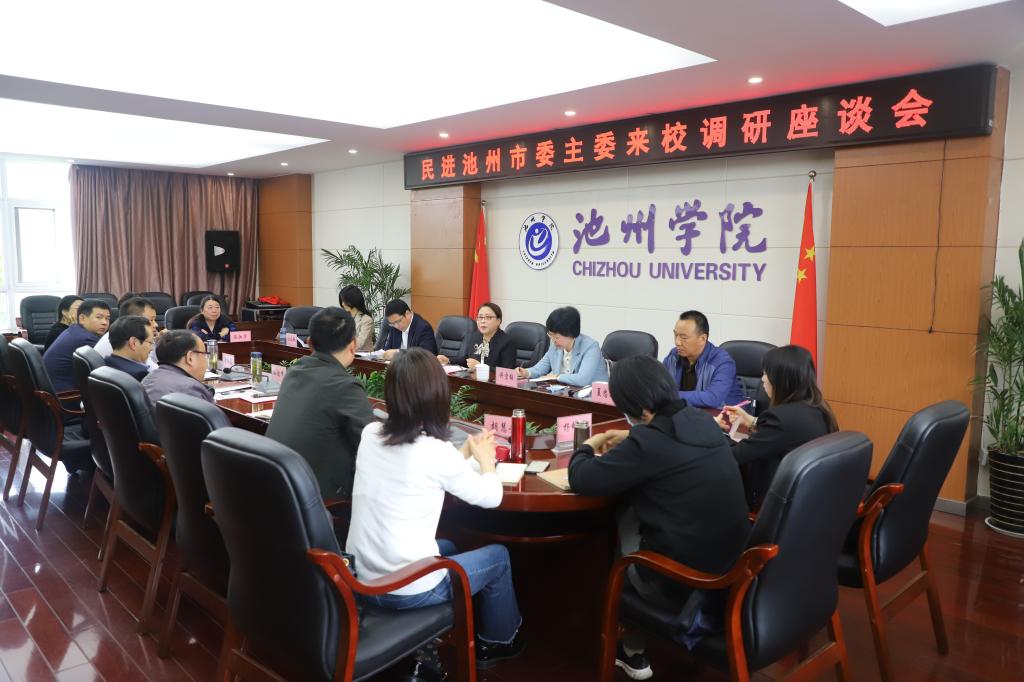 4月20日下午,池州市政协副主席、民进池州市委主委程平,副主委许雪梅、包可等一行5人来买球官网调研。校党委书记孙晓峰主持调研座谈会并讲话。
