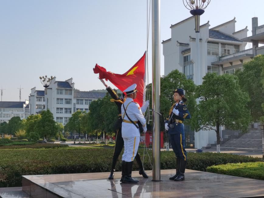 举行主题升旗仪式。清晨,以“弘扬五四精神,凝聚青春力量”为主题的升旗仪式在校南大门国旗台隆重举行。升旗仪式上,学生代表开展国旗下的主题演讲和朗诵,带领大家回顾历史,传递伟大爱国情怀和革命精神。仪式结束后,同学们表演了手势舞《五月的花海》,抒发矢志不渝的红色情怀。