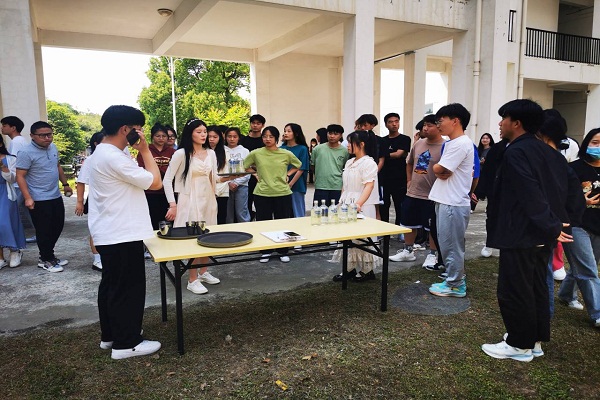在活动现场,同学们通过班级对抗、小组比拼等方式,将鸡尾酒调制、咖啡冲泡、托盘端托、中式铺床等专业劳动技能展示比拼。活动内容丰富、形式活泼,气氛热烈。