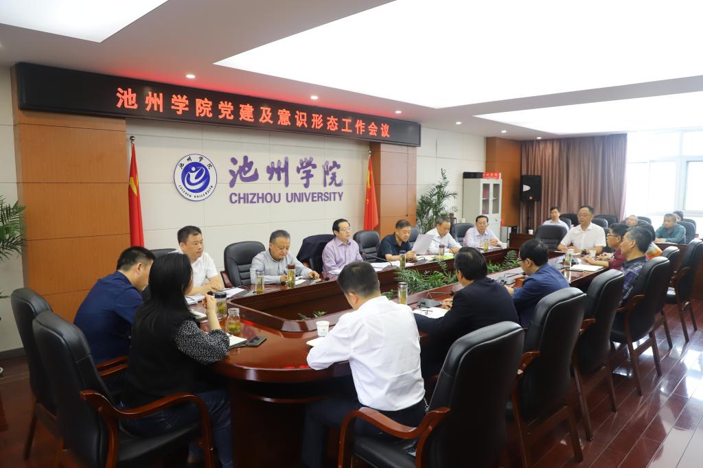 5月19日,买球官网召开全校党建及意识形态工作会议。院党委书记孙晓峰主持会议并讲话,院党委班子崔国发、汪海、阳光宁、汪贤才、汤文益出席会议。
