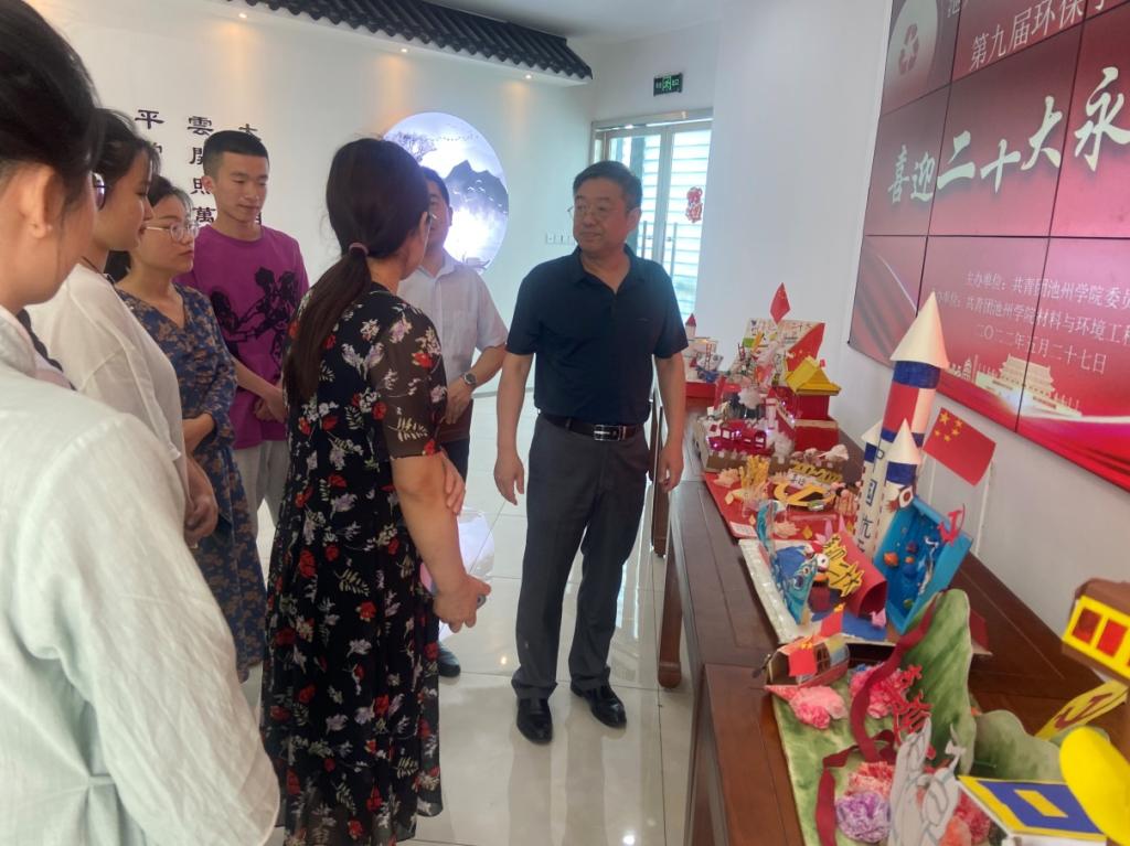 5月27日,外围买球app十大平台第九届环保手工制作大赛圆满结束,院党委副书记崔国发到场指导。