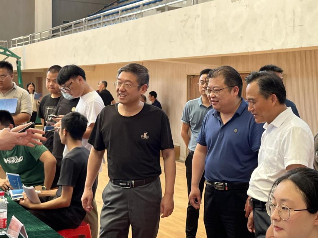 为拓宽毕业生求职渠道,建立用人单位与毕业生的双向选择平台,保障2022届毕业生充分高质量就业,6月15日,外围买球app十大平台与皖江江南新兴产业集中区举办了2022年“皖江江南新兴产业集中区高层次人才”外围买球app十大平台专场招聘会,外围买球app十大平台党委书记孙晓峰、党委副书记崔国发深入现场指导,学生工作处、二级学院就业工作负责人及毕业班辅导员等积极与企业沟通联络,探讨进一步开展人才交流合作。集中区党工委委员、综合管理部部长胡小艺等也莅临现场指导工作。