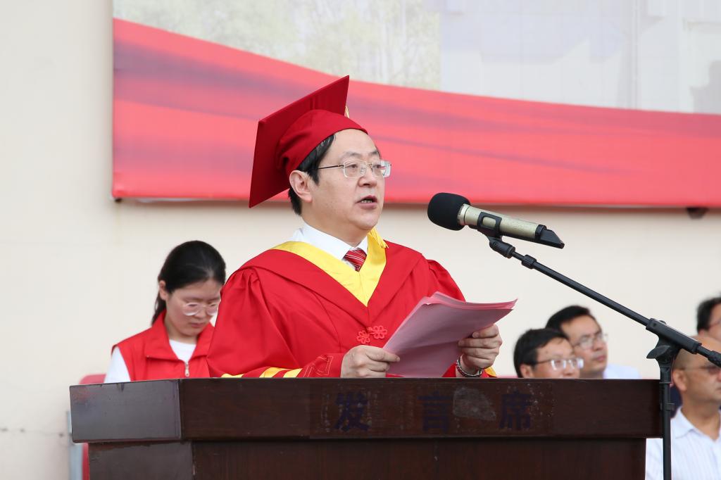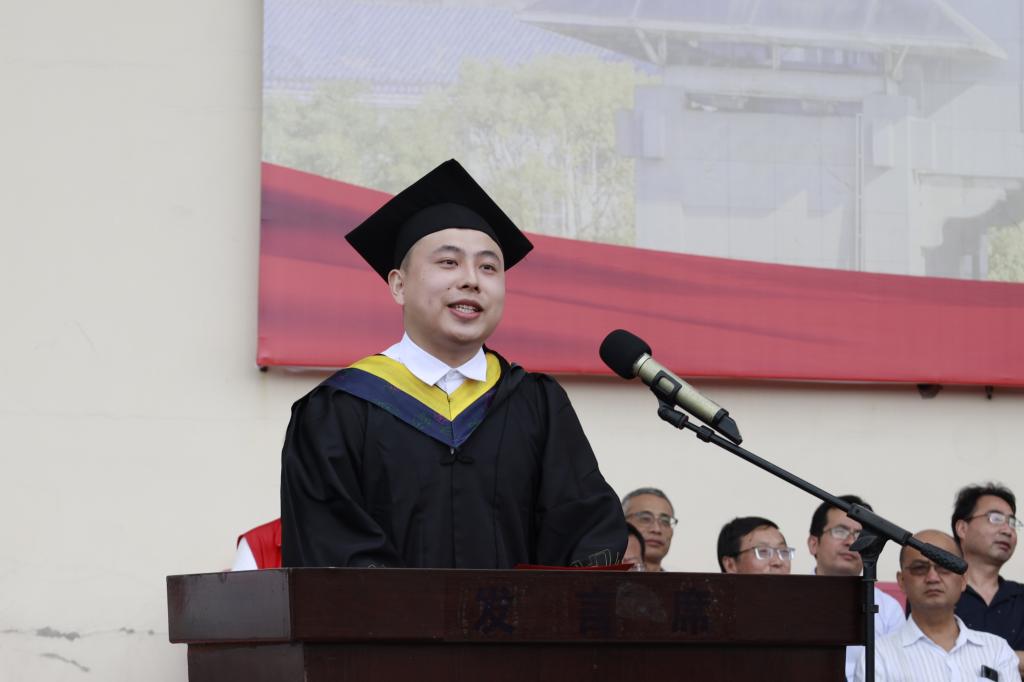 机电工程学院教授许业军代表教师发言,表达了母校师生对全体毕业生的牵挂与不舍,为同学们送上了祝福和期望,希望大家能牢记师长教诲,在新征程上努力创造新成绩,来回报母校和老师。