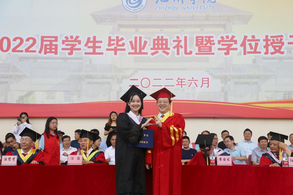 机电工程学院陈啸同学代表毕业生发言,表达了对母校和老师的感激之情,并立志在青春的赛道上跑出池院学子的青春加速度,努力成为不负时代、不负青春的强国栋梁。文学与传媒学院姚倩同学代表在校生为学长、学姐送上了深深的祝福。