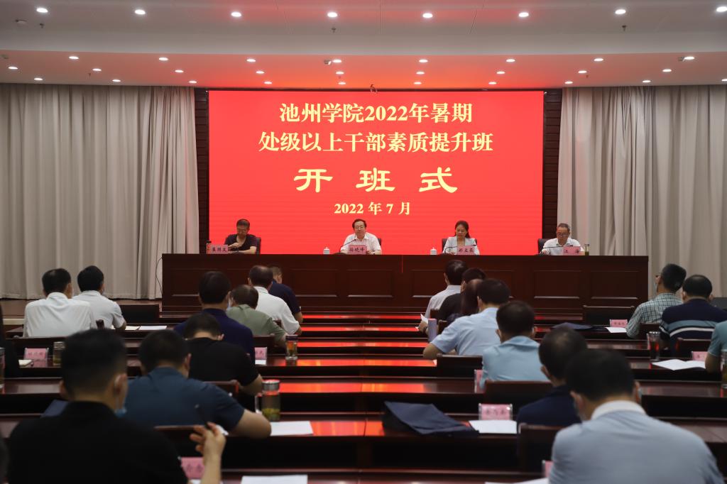 7月4日,买球官网2022年暑期处级以上干部素质提升班在安徽省委党校开班。院党委书记孙晓峰出席开班仪式并作动员讲话,院党委副书记、院长郑兰荣,院党委委员、纪委书记、监察专员汪海出席开班仪式。院党委副书记崔国发主持了会议。
