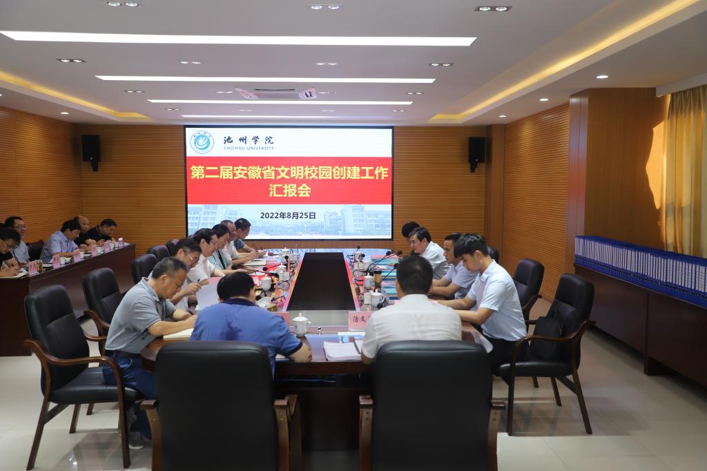 8月25日,第二届安徽省文明校园实地考察组组长、淮北师范大学党委常委、副校长蔡雷,滁州学院党委常委、宣传(统战)部长吉晓华,宿州学院党委委员、宣传(统战)部长李真,淮北师范大学宣传部陈旸一行到买球官网实地考察第二届安徽省文明校园创建工作。党委书记孙晓峰主持汇报会并讲话,党委副书记、院长郑兰荣,党委副书记崔国发,党委委员、纪委书记、监察专员汪海,党委委员、副院长阳光宁、吕刚出席汇报会。
