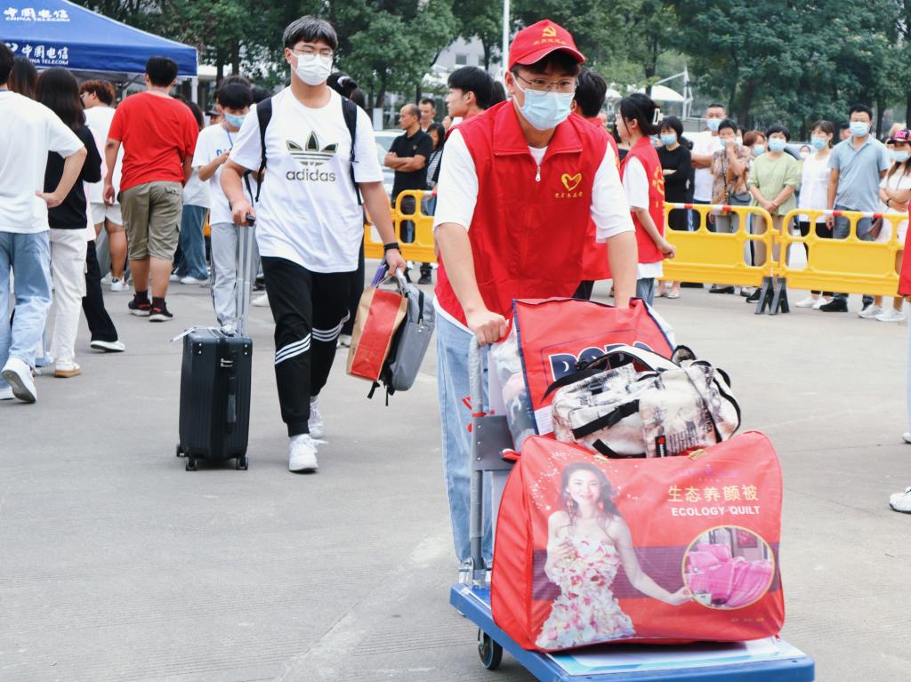 学校优化迎新流程,让入学办理更便捷,在校门口按照疫情防控要求完成检验后,第一时间引导至报到处完成入学报到;安排摆渡车和大巴车为新生接送行李;设立“绿色通道”,解答资助政策,办理相关手续;设置志愿服务点、家长休息区等服务平台,为新生及家长提供贴心服务……