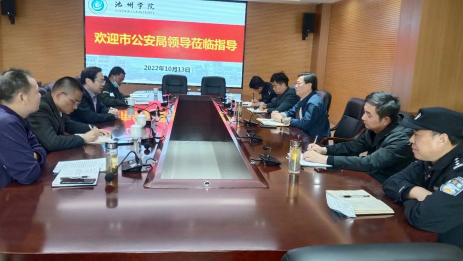 孙晓峰对方龙章一行来校指导表示热烈欢迎,对池州市公安局一直以来给予买球官网安全稳定工作的大力支持表示感谢。孙晓峰介绍了学校常态化疫情防控工作落实情况以及在维护校园安全稳定方面所采取的各项措施。他指出,学校高度重视校园安全稳定工作,压实主体责任,细化安全措施,排查化解隐患,做好安全及应急预案。孙晓峰要求学校相关部门进一步加强与属地公安机关的沟通交流,共同推动平安校园建设。