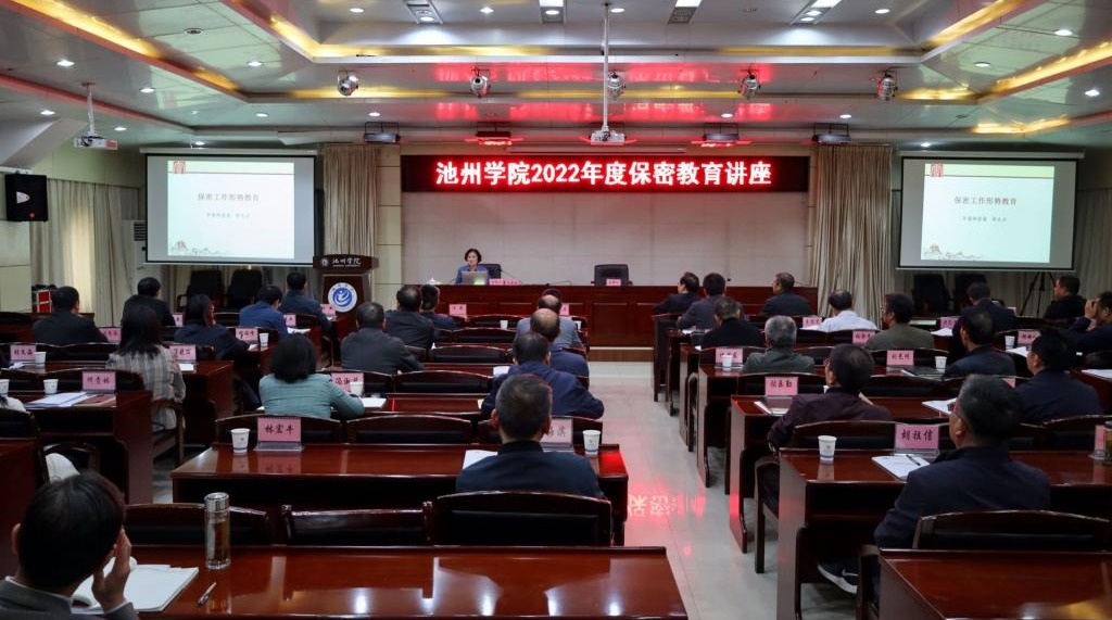 为进一步提高师生员工的保密意识和遵守保密法律、法规的自觉性,做好新形势下保密工作,切实增强保密工作业务能力,10月25日下午,买球官网邀请池州市委保密办负责同志到校开展保密知识专题讲座。校党委书记孙晓峰、党委副书记崔国发出席活动,各部门、各二级学院主要负责同志听取讲座。
