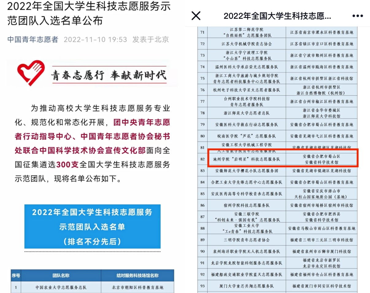 近期,团中央青年志愿者行动指导中心、中国青年志愿者协会秘书处联合中国科学技术协会宣传文化部面向全国征集遴选300支全国大学生科技志愿服务示范团队,买球官网材料与环境工程学院青协分会组织申报的“启明星”科技志愿服务队成功入选2022年全国大学生科技志愿服务示范团队。