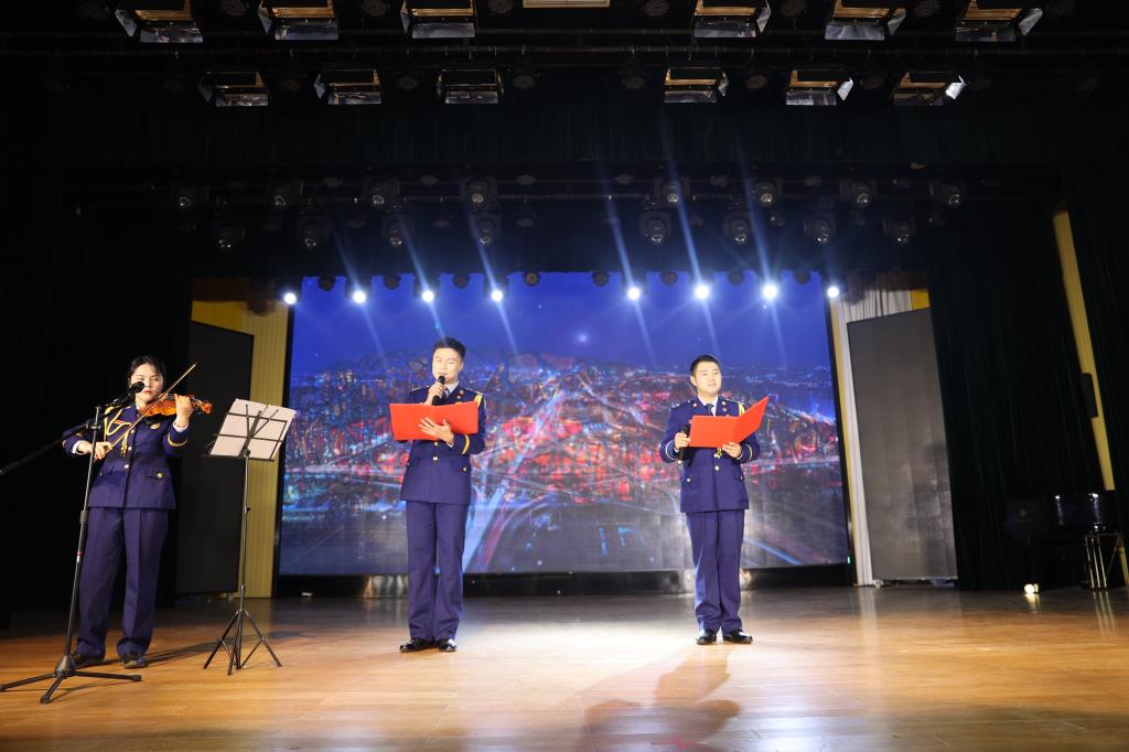 活动中,池州支队的先进典型陈骅,结合自己多年从事消防救援工作的经历和经验,讲述了在消防救援队伍中的奋斗事迹和人生感悟,分享了工作中的成长点滴和心路历程,极大激发了广大消防防官兵和买球官网师生向典型对标、向典型看齐的昂扬斗志,进一步增强了听党话、跟党走的信心、决心和意志。总队小分队献上了川剧《变脸》、朗诵《我和我的祖国》和古风琴舞《忆江南》等精彩演出,精湛的表演赢得了一阵又一阵掌声;池州支队指战员代表和买球官网师生代表表演了傩舞《国泰民安》、独唱《把一切献给党》、双人对唱《逆行者》、《罗城民歌》等特色节目,活动现场精彩纷呈,高潮迭起。