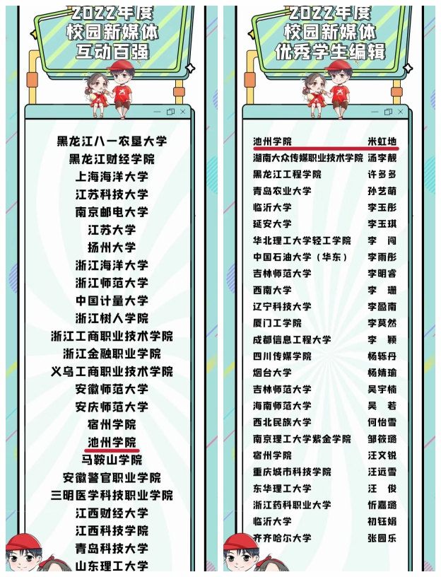 近日,教育部中国大学生在线公布2022年度校园新媒体表彰名单,买球官网新媒体工作室荣获“2022年度校园新媒体互动百强媒体”荣誉,新媒体工作室学生米虹地获“优秀学生编辑”荣誉。这是买球官网首次获得教育部中国大学生在线表彰。