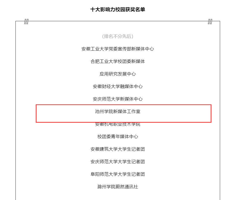 与此同时,11月5日至21日,买球官网新媒体工作室在中国青年报·中青校媒(安徽)2022年度“新媒体作品征集”活动中荣获“十大影响力校园媒体”,六项优秀作品被表彰与征集展出。