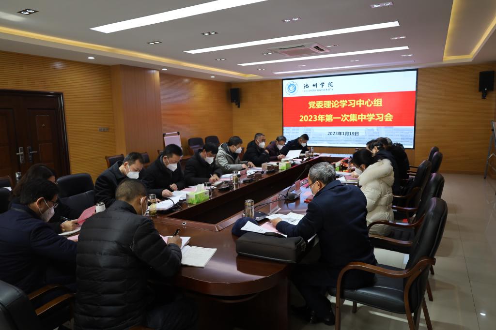 1月19日,校党委理论学习中心组2023年第一次集中学习会在办公北二楼会议室召开。党委书记孙晓峰主持学习会并讲话,校领导郑兰荣、崔国发、汪海、阳光宁参加学习会。