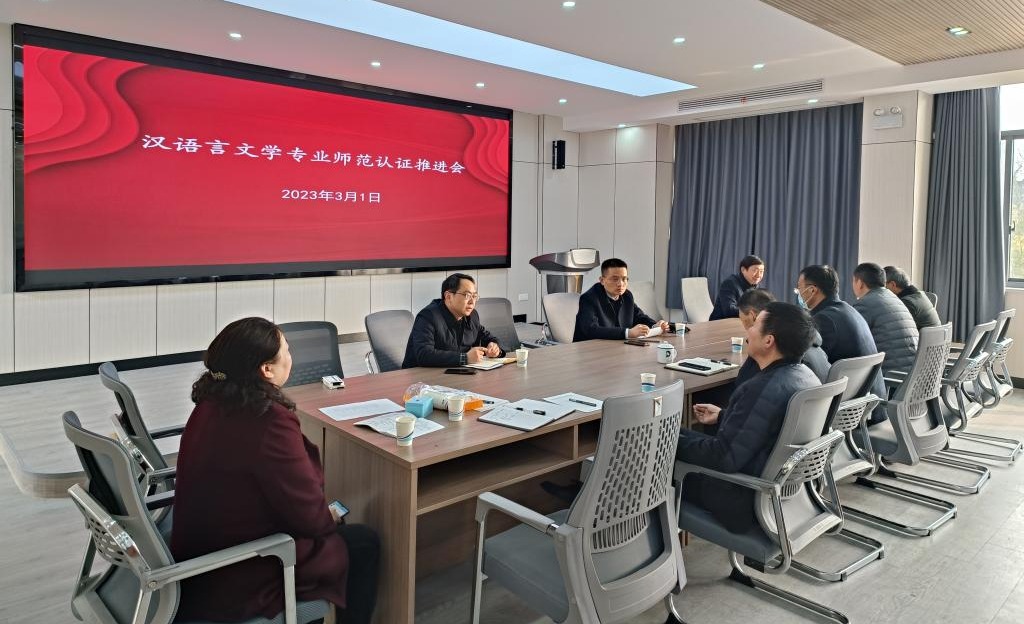 为进一步推进买球官网师范专业认证工作,加强汉语言文学专业内涵建设,3月1日下午,学校在博物楼视听实训室召开汉语言文学专业师范认证工作推进会。党委委员、副院长吕刚出席会议并讲话,教务处、发展规划处、文学与传媒学院、汉语言文学专业负责人及有关骨干教师参加会议。
