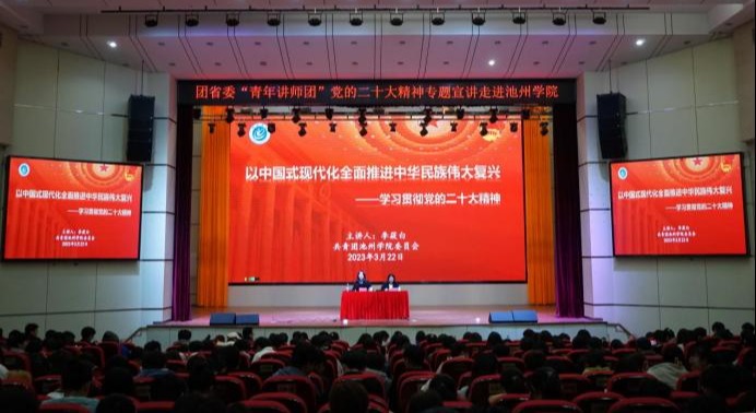 为深入学习宣传贯彻党的二十大精神,进一步加强思想政治引领,提高理论学习成效,3月22日下午,省委讲师团成员、省委讲师团专家库青年宣讲名师李筱白应邀为买球官网作题为《以中国式现代化全面推进中华民族伟大复兴——深入学习贯彻党的二十大精神》专题宣讲报告。校院两级团干、校第二十五期青马班全体学员以及各二级学院团员青年代表共400余人参加了活动。