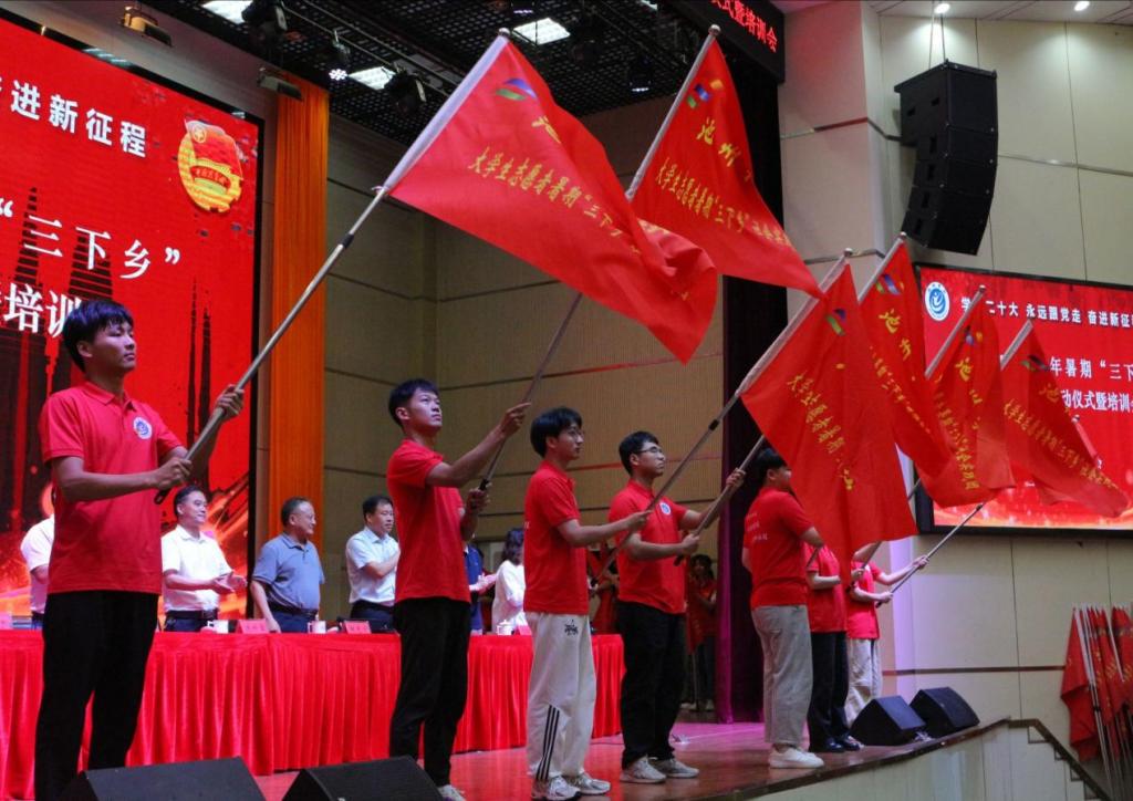启动仪式上,阳光宁与主席台就座的老师共同向校级团队代表授旗,校团委就2023年买球官网暑期社会实践活动的整体情况和部署安排进行了介绍,师生代表分别作了发言,全体志愿者进行庄严宣誓,标志着买球官网2023年暑期“三下乡”社会实践活动正式启动。