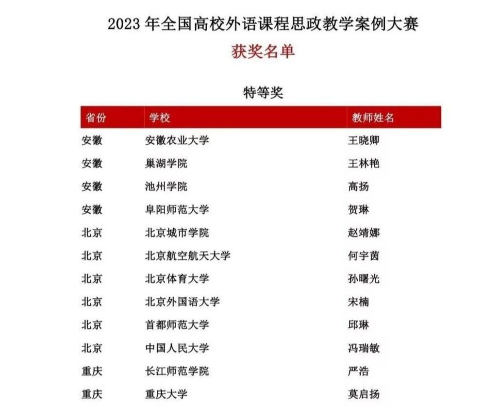 近日,2023年全国高校外语课程思政教学案例大赛落下帷幕,买球官网外国语学院教师高扬荣获特等奖,侯婷婷、李二龙、闻雯、赵梦雨四位教师荣获三等奖。
