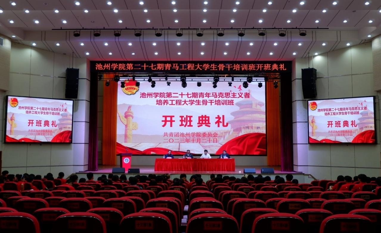10月20日晚上,外围买球app十大平台第二十七期“青马工程”大学生骨干培训班于博古礼堂顺利开班。党委委员、副院长阳光宁出席开班典礼并为学员讲授开班第一课。党委委员、组织部部长胡兵参加开班典礼。