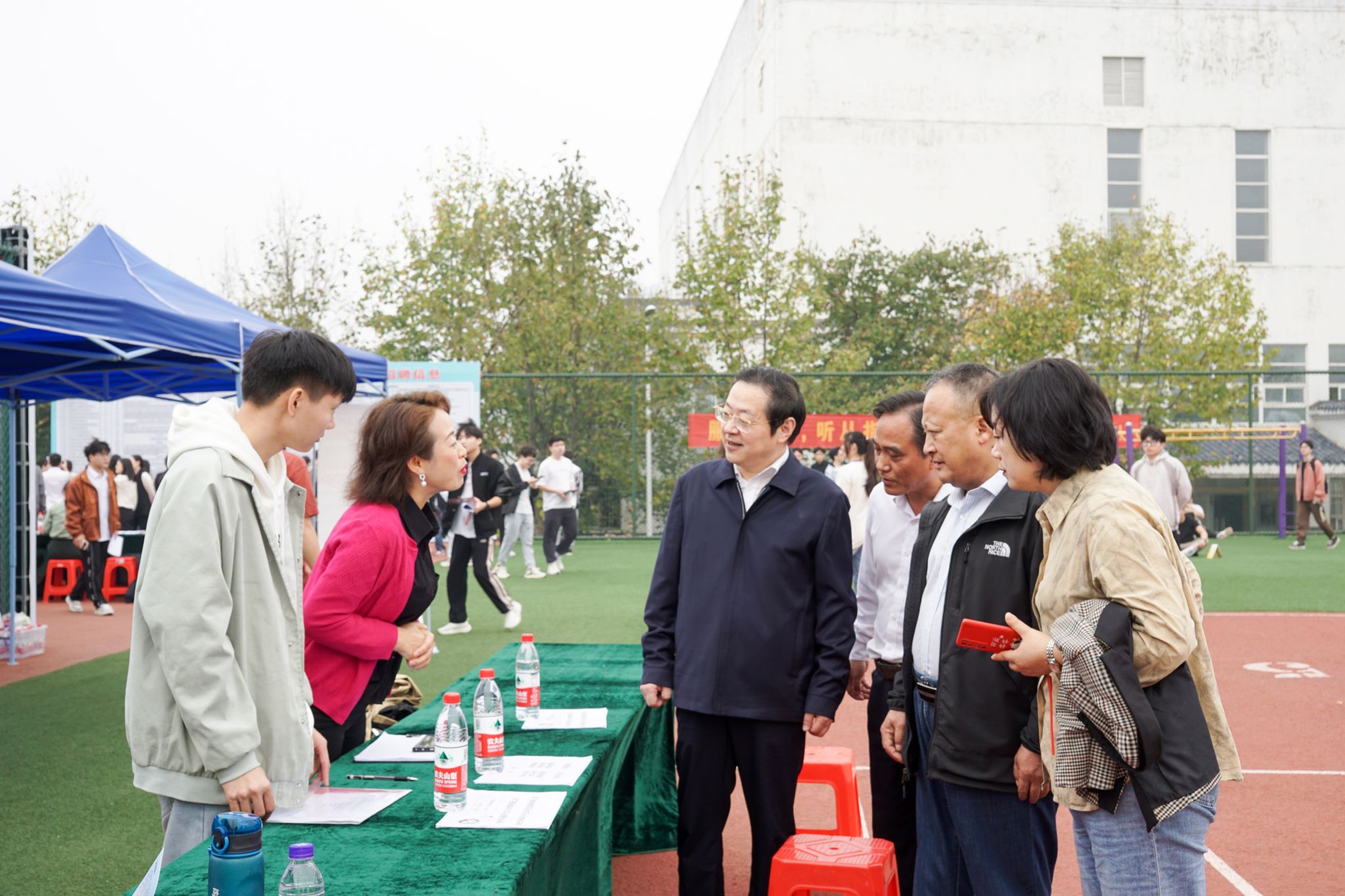 11月4日,学校在体育场举办2024届毕业生秋季大型双选会。党委书记孙晓峰到场调研指导,了解现场工作情况及毕业生就业工作情况。党委委员、副院长阳光宁,省大中专毕业生就业指导中心市场信息部负责人尚昌庚参加活动。