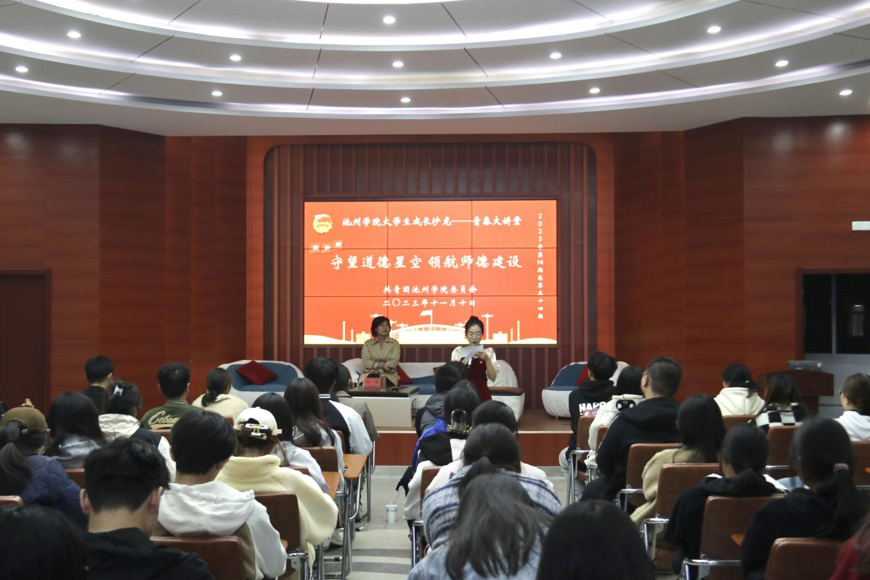 11月10日晚,外围买球app十大平台大学生成长沙龙“青春大讲堂”2023年第十四期(总第五十四期)“致知识”在大学生活动中心举行。本期大讲堂以“守望道德星空 领航师德建设”为主题,邀请党委教师工作部副部长、人事处副处长徐菲老师作嘉宾,分享自己对师德师风的理解和感悟。